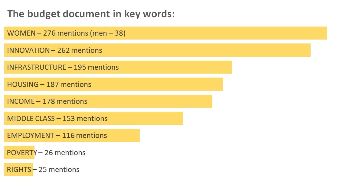 - A new chapter of the budget reflects the government’s commitment to introduce gender-based analysis. The chapter provides an overall statement on gender equity and gender context for a number of initiatives but stops short of actually publishing gender-based analysis of different measures.
